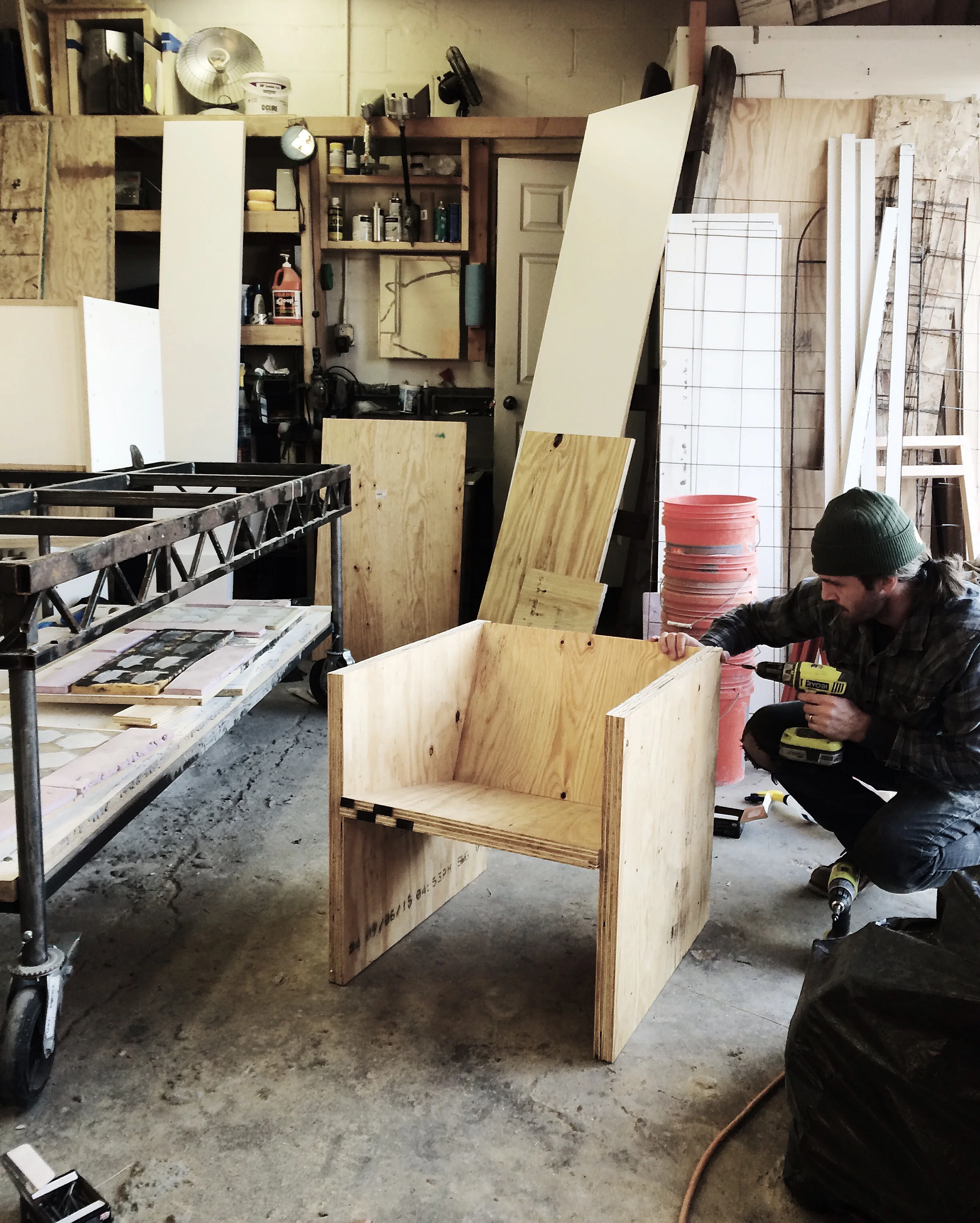 We are collaborating with furniture designer Concrete Pig on a chair. Above are images from our first round of prototyping in plywood. It's our ultimate goal to create the chair in concrete in one single pour to keep it a singular form. Stay tuned for more updates on our process and follow along on Instagram by following the #BodegaLTDxConcretePig.