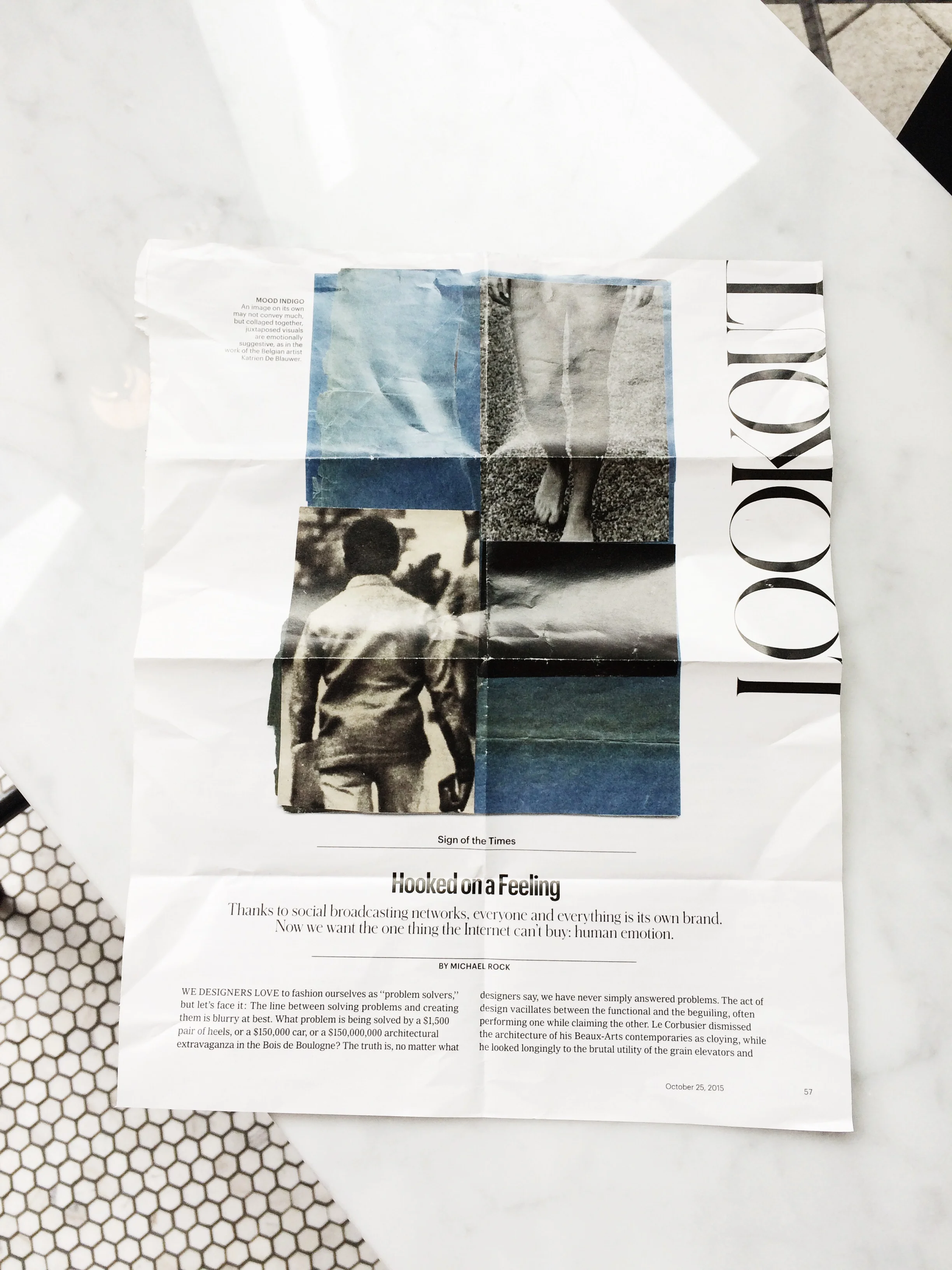 A dear client showed up to dinner with a clipping from T Magazine called "Hooked on a Feeling". It's about the notion of empathy marketing. All people are looking for is connection, mood, something that can't quite be articulated with words, but rather felt.